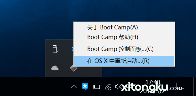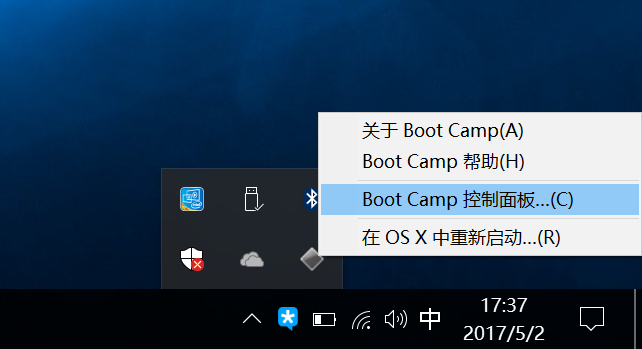 可在Win10系统右下角调出Bootcamp控制面板设置启动磁盘、键盘、触控板等