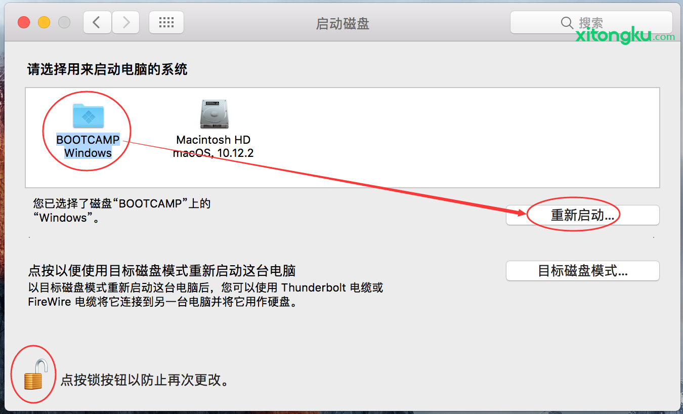 依次进入 系统偏好设置 > 系统 > 启动磁盘