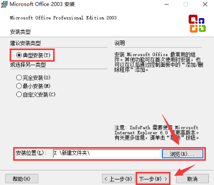 6、依次选择典型安装和安装的位置