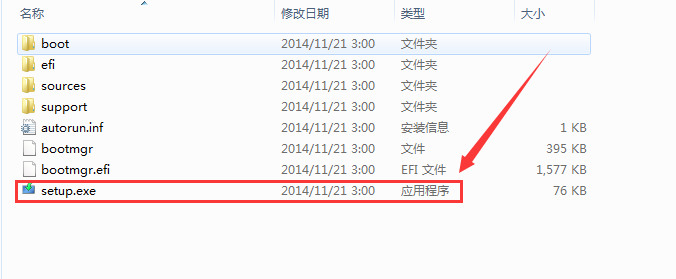 1、使用解压工具把win8原版镜像文件解压到C盘之外的分区,比如D盘。然后打开文件夹点击setup.exe