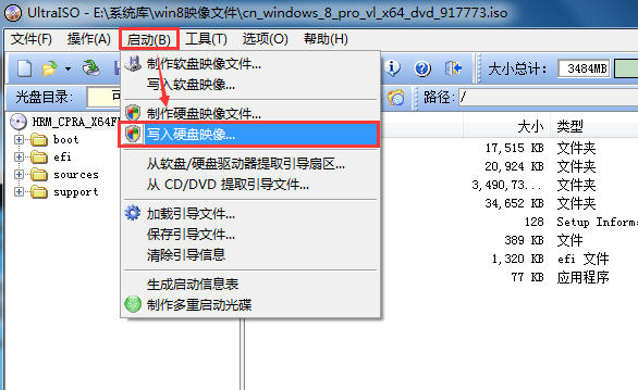 3、在 “启动” 项里选择 “写入硬盘映像”