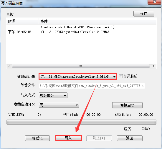 4、确认将要写入的U盘(请注意备份U盘资料),等待写入完成即可进行安装
